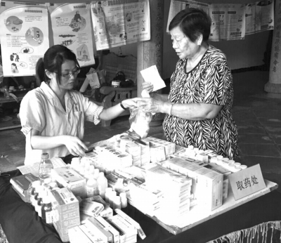 洪大媽現(xiàn)場領(lǐng)取市醫(yī)院提供的免費(fèi)藥品。