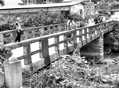 11日9時許,記者站在橋上,現(xiàn)場目測原橋不過4米寬,橋下溪水潺潺。此時剛好一輛小貨車經(jīng)過,記者的雙腳明顯感受到顫動。