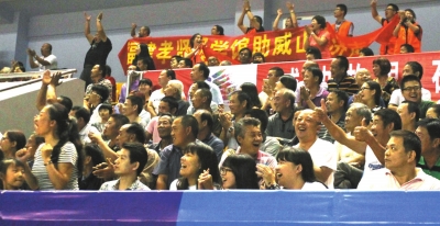 比賽精彩激烈,熱情的觀眾為選手們吶喊助威。