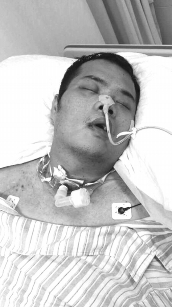 或許是因?yàn)椴⊥吹恼勰ィ谥委熯^程中,李志超一直咬斷嘴里的氧氣管,牙齒都斷了3顆,擔(dān)心此類情況再次發(fā)生,供氧不夠,醫(yī)生為李志超做了切喉手術(shù),把輸氧管接到他的喉嚨內(nèi)。