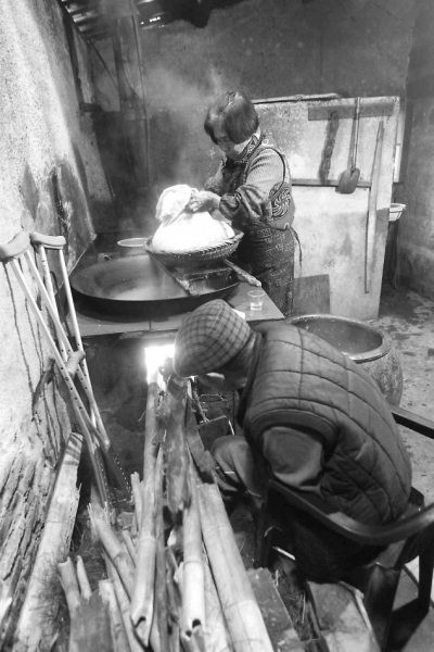 陳玉意與老伴一起熬制麥芽糖。