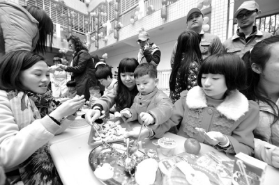 當(dāng)天上午,市福利中心張燈結(jié)彩,愛(ài)心人士和小朋友們一起包餃子、玩游戲,真真幼兒園的小朋友們帶來(lái)了《新年好》、《小朋友》、《追夢(mèng)》等歌唱舞蹈節(jié)目,現(xiàn)場(chǎng)一片歡聲笑語(yǔ),熱鬧非凡。