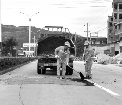 昨日,南安公路分局組織各公路站共出動近30名公路養(yǎng)護職工和8輛養(yǎng)護機械設(shè)備,用瀝青料45噸,重點對國道324線,省道201線、307線,縣道336線、305線、310線、332線路面坑槽進行修復(fù),讓春運更“安全、順暢、快捷”。