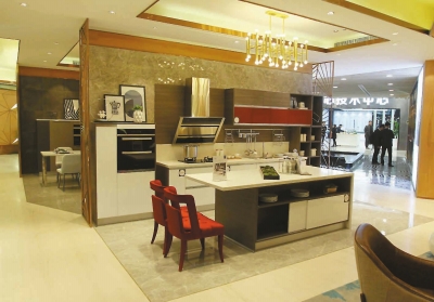 圖為九牧五星定制泛家居廚衛(wèi)體驗(yàn)館一角。