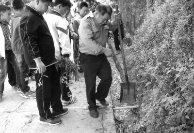 黃奮興生前教學(xué)生清理水溝。