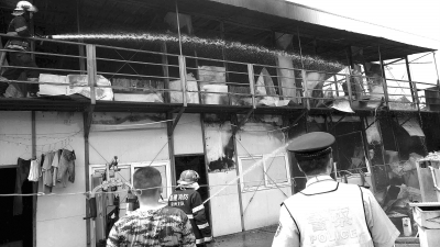 消防人員兵分兩路,在兩層宿舍分別布置一把水槍,經(jīng)10多分鐘“夾擊”,火勢(shì)才得到控制。
