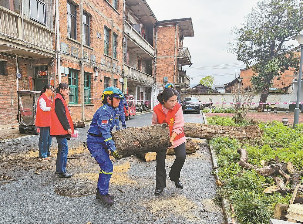 24日一早,邵武市水北街道原醫(yī)藥站宿舍小區(qū)傳來“轟”的一聲巨響,院內(nèi)一棵高約20米的枯樹突然倒下,所幸未造成人員傷亡,但倒下的枯樹堵住了樓道,人員無法通行。社區(qū)工作人員迅速聯(lián)系了有移除居民區(qū)“危樹”經(jīng)驗的邵武市藍天救援中心。