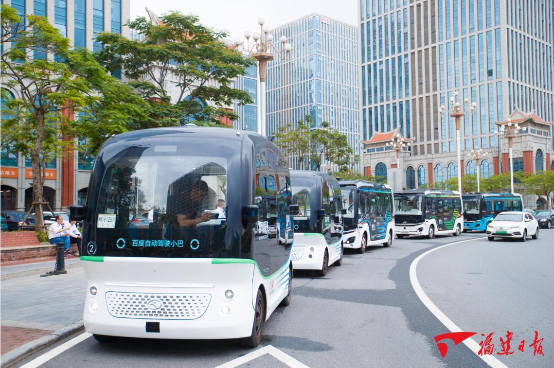 多款自動(dòng)駕駛金龍巴士在廈門軟件園三期行駛。 福建日?qǐng)?bào)記者 施辰靜 攝
