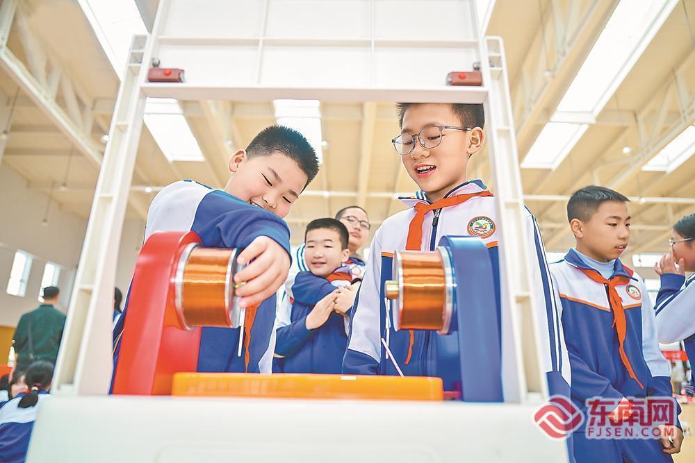 作為活動重頭戲,流動科普設施巡展在泰寧縣丹霞實驗學校藝體館內拉開帷幕。中國科技館精準服務覆蓋縣試點的1輛科普大篷車,與三明區(qū)域共享中心的5輛科普大篷車整齊列陣,組成一支流動的“科技艦隊”,60余件多學科領域的互動展品隨車亮相。