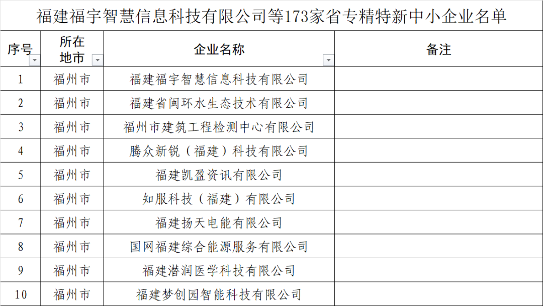 附件:福建福宇智慧信息科技有限公司等173家省專精特新中小企業(yè)名單