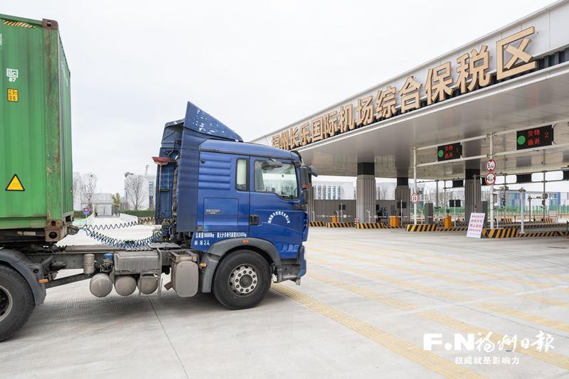 滿載貨物的貨車駛?cè)敫V蓍L樂國際機場綜合保稅區(qū)。記者 林雙偉 攝