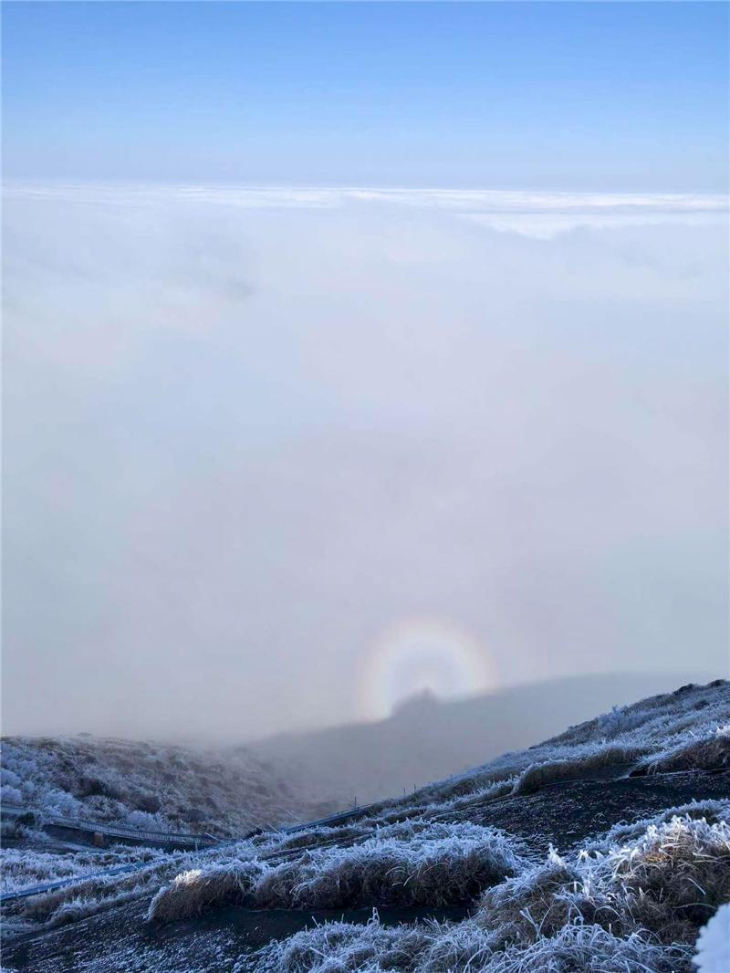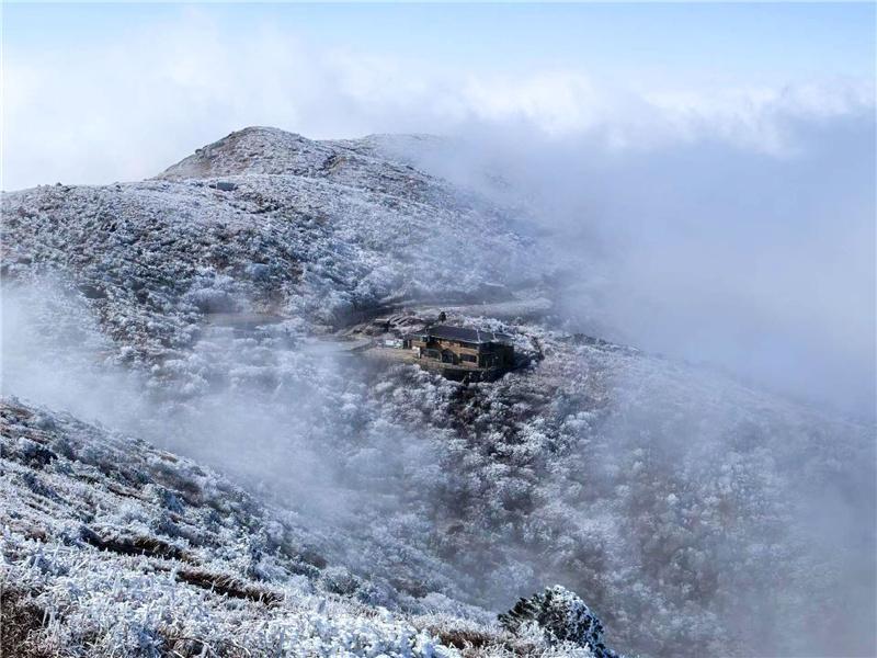 金鐃山迎來2026年首場霧凇。