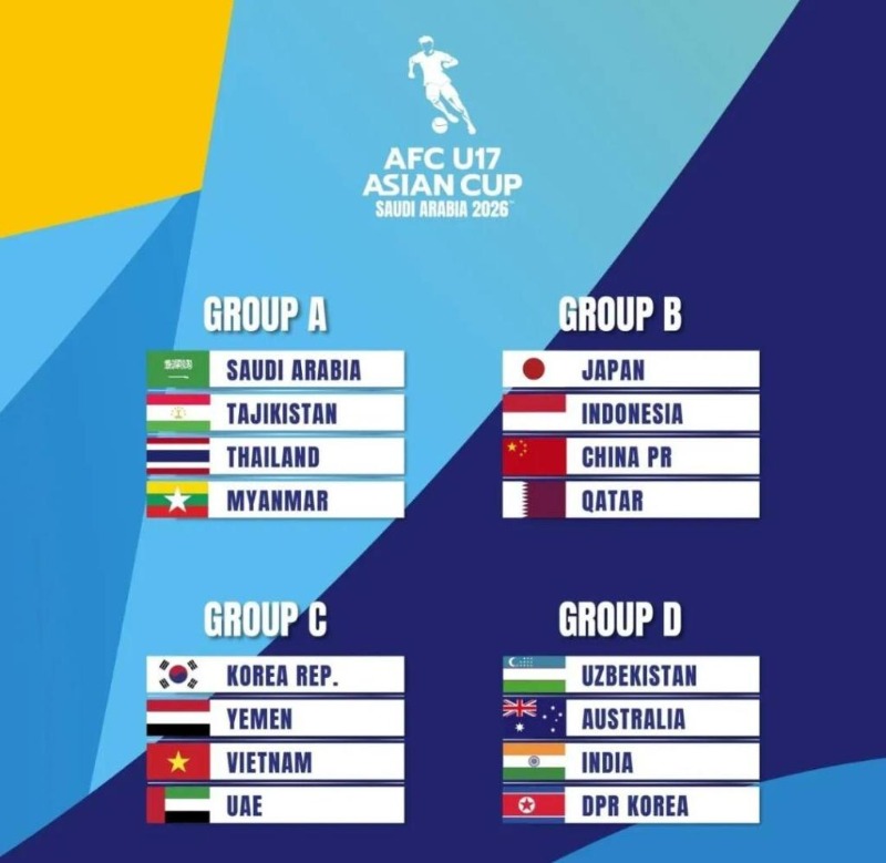本屆U17亞洲杯將于5月7日至24日在沙特阿拉伯舉行。16支參賽球隊(duì)共分為四個(gè)小組,各小組前兩名可直接晉級(jí)八強(qiáng),并直接鎖定今年底在卡塔爾舉行的2026年U17男足世界杯(世少賽)參賽資格。