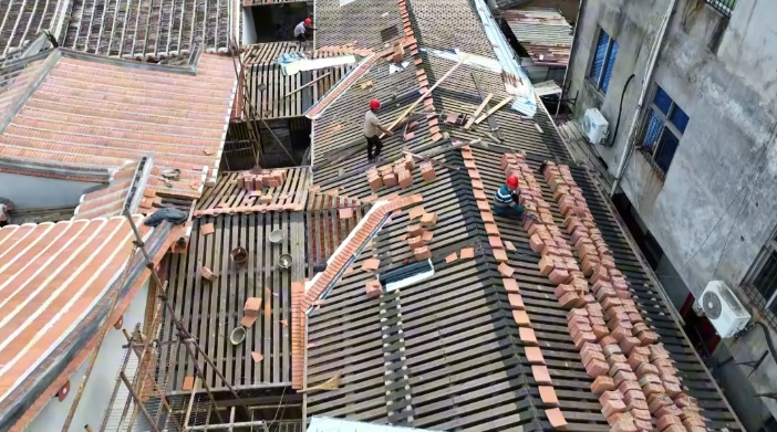 目前修繕工作進入關(guān)鍵階段,屋面工程已完成約80%,墻體、門窗等修復(fù)正同步推進,整體完工預(yù)計還需3至4個月。作為泉州市文旅經(jīng)濟重點在建項目,湖頭古鎮(zhèn)文化街區(qū)自去年7月啟動以來,正全力推進首期建設(shè),力爭今年年底實現(xiàn)開街運營。