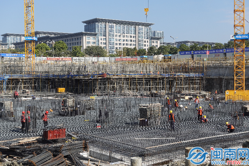 閩南網(wǎng)記者走進(jìn)項(xiàng)目建設(shè)現(xiàn)場看到,塔吊林立、運(yùn)輸車輛往來穿梭,300多名工人正分散在各個區(qū)域,完成鋼筋綁扎、模板搭建、土方開挖等施工作業(yè)。