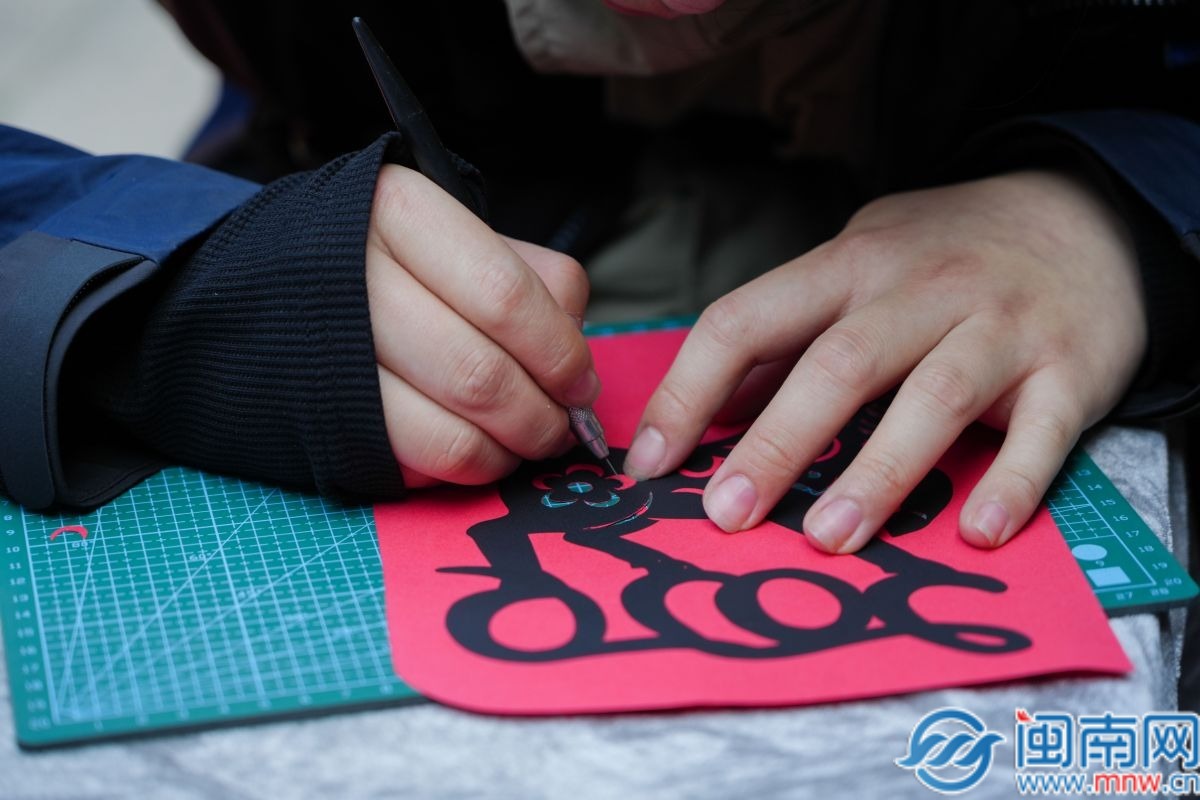 活動現(xiàn)場,泉州刻紙、金蒼繡兩大特色非遺體驗(yàn)項(xiàng)目與趣味畫燈活動同步開展,吸引了不同年齡段的參與者。刻紙?bào)w驗(yàn)區(qū)里,參與者們手持刻刀、鋪展紅紙,在傳承人的指導(dǎo)下,小心翼翼地勾勒,最終完成了寓意吉祥的馬年紋樣;金蒼繡體驗(yàn)區(qū)更是人氣十足,絲線與金箔交織的獨(dú)特質(zhì)感讓參與者興致盎然,大家穿針引線,將細(xì)密金線與彩線錯落繡于布面,感受非遺技藝的精巧與匠心。