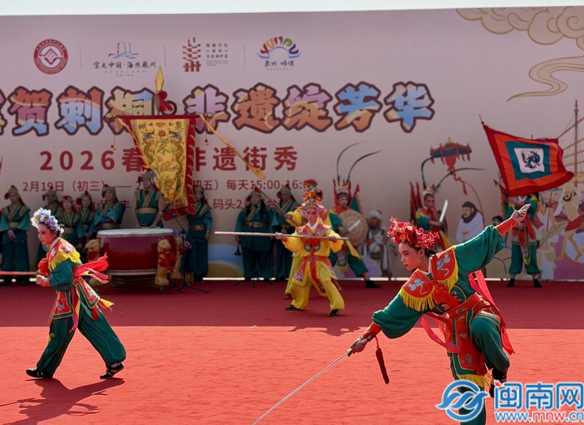 據悉,2月19日至22日(正月初三至初六),泉州以“穿越千年”為主題,在全市40個地標街區(qū)推出超280場非遺展演活動,涵蓋100多項非遺技藝,打造出一座座“流動的閩南文化博物館”?;顒哟撈鹗袇^(qū)中山路、蟳埔村、永春五里古街等歷史文化街區(qū),南音的悠揚、提線木偶戲的精巧、高甲戲的鮮活、板凳龍的熱鬧等非遺風采輪番上演,誠邀市民游客在年味中品讀閩南文化。