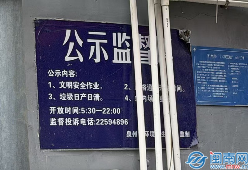 根據(jù)現(xiàn)場公示牌,該公廁的責任單位為泉州市刺桐鯉市政管理有限公司。據(jù)該公司工作人員介紹,他們于2024年9月接手管養(yǎng)老城區(qū)公廁,接手時,該公廁就已設在轉(zhuǎn)運站鐵門內(nèi)。