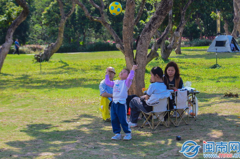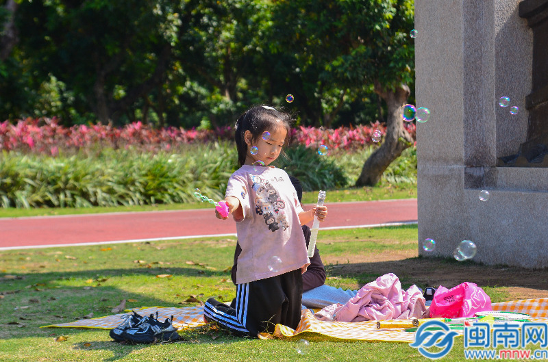 在公園的草場(chǎng)斜坡上,不少市民鋪開(kāi)野餐墊,孩子們?cè)诓萜荷献分疰覒?,趁著和煦?yáng)光享受愜意的假期時(shí)光。騎行愛(ài)好者穿梭于臨江慢道,風(fēng)箏愛(ài)好者則在開(kāi)闊草地上放飛紙鳶,構(gòu)成了一幅生動(dòng)的泉州春日?qǐng)D景。