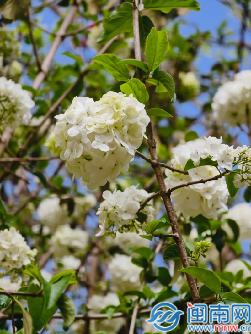 此外,東湖公園內(nèi)各色花朵競(jìng)相綻放,中華木繡球進(jìn)入盛花期,碩大的白色花團(tuán)簇?fù)碇︻^,遠(yuǎn)望如漫天雪球;一株株碧桃樹(shù)亭亭玉立,粉嫩的花瓣層層疊疊,如云霞般鋪滿枝頭。