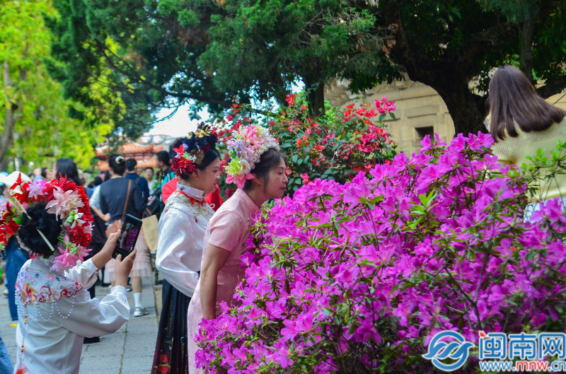 在開(kāi)元寺賞花拍照的游客