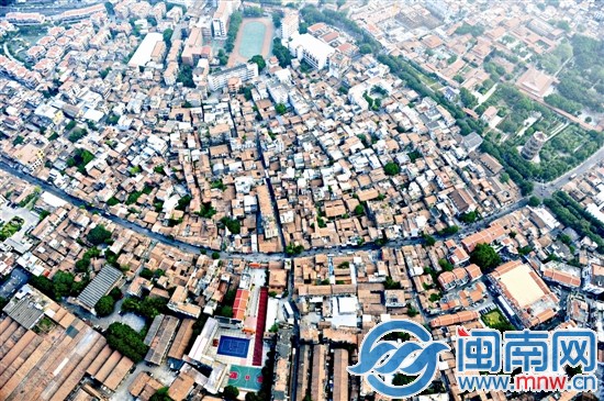 本報去年年底航拍的泉州西街,這一片磚紅成為古城的代名詞