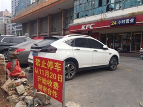 昨日下午,記者來(lái)到靈秀路肯德基店。記者看到,在肯德基門(mén)前的空地上設(shè)有一處“禁止停車(chē),11月20日起開(kāi)始收費(fèi),謝謝合作”的停車(chē)收費(fèi)標(biāo)識(shí),該標(biāo)識(shí)并無(wú)落款。現(xiàn)場(chǎng),記者未發(fā)現(xiàn)有人在收費(fèi),車(chē)輛出入時(shí)也未見(jiàn)有人來(lái)收費(fèi)。