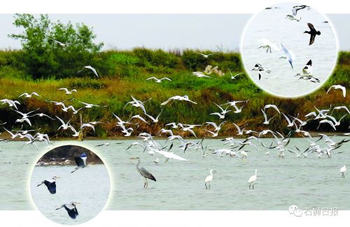 記者昨天在這里看到群鳥戲冬的熱鬧場景:白鷺、蒼鷺、反嘴鷸、綠翅鴨、紅頸鴨、紅嘴鷗、灰背鷗……或群飛、或追逐,或散步、或覓食,嘰嘰喳喳的叫聲不絕于耳。
