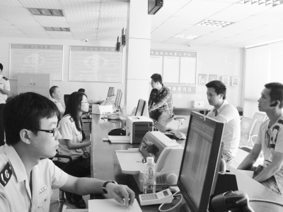 ▲在石獅市國稅局車輛購置稅延伸辦稅點,工作人員正提供優(yōu)質的服務。