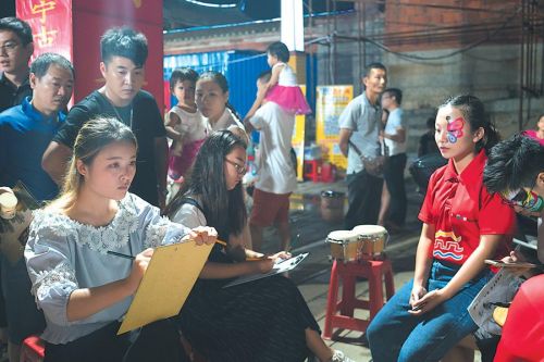今年的永寧兩岸城隍文化節(jié)的文創(chuàng)活動(dòng)現(xiàn)場(chǎng),曾經(jīng)來過青年旅社的大學(xué)生又一次組隊(duì)前來,爭(zhēng)當(dāng)志愿者。