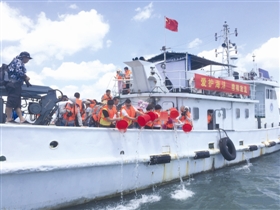 7月12日上午,“海上看石獅——愛海養(yǎng)海增殖放流”活動在祥芝鎮(zhèn)祥漁海域舉行。石獅市政府副市長李斌參加活動。