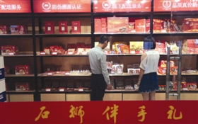 記者看到,在展示中心里擺放著各種包裝精美的石獅特色伴手禮,有“中國地理標(biāo)志證明商標(biāo)”的“古浮紫菜”,有“國家非物質(zhì)文化遺產(chǎn)”的“青蓮面線”,更有讓石獅市民、僑胞耳熟能詳?shù)睦献痔栃〕?ldquo;商記”糖品、“義興甜粿”以及獨具石獅地方特色的“回味”食品、“海百皇”魚罐頭、“山海朝陽”“匯溪麻薯”“赤湖瓜子”等,受到游客青睞。這些石獅“伴手禮”集中一起,不時有游客尤其是入住酒店的旅客前來咨詢、選購。
