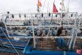2017-08-03 08:38 來源:石獅日?qǐng)?bào)船頭放鞭炮,桅桿拉彩旗,漁民們提著蔬菜,背著大米,扛著礦泉水等生活用品登船預(yù)備出海。時(shí)隔三個(gè)月零一天,闊別已久的忙碌場(chǎng)景再現(xiàn)東埔碼頭,石獅