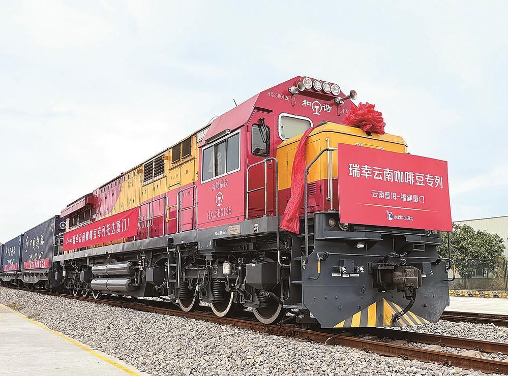 21日,“瑞幸號”云南咖啡豆專列順利抵達廈門。