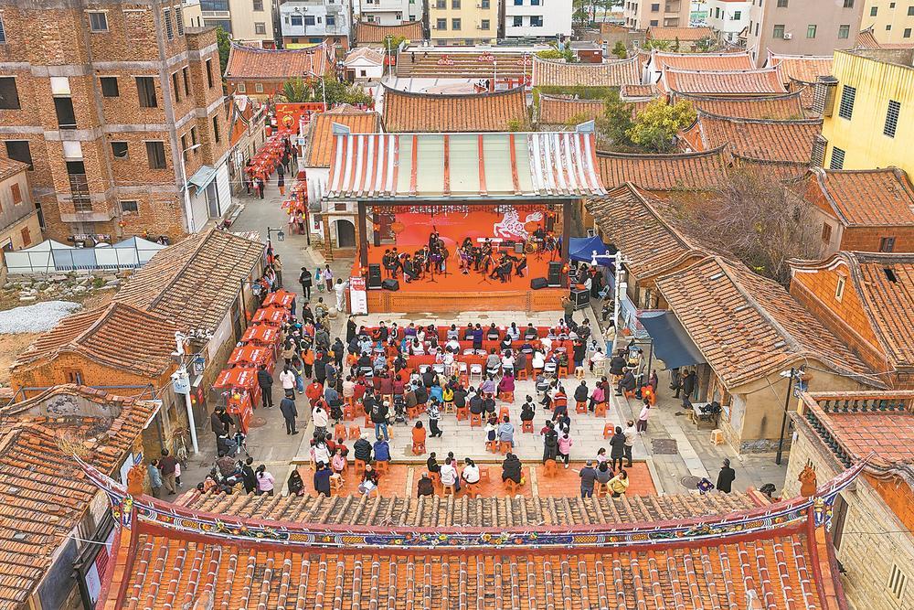 臘月的海風(fēng)拂過大嶝島田墘社區(qū)的紅磚厝聚落,歡聲笑語驅(qū)散了海島冬日的寒意。2月1日,一場名為“墘來福到·斗陣迎新”的新春慶典活動在這里舉行(上圖)。