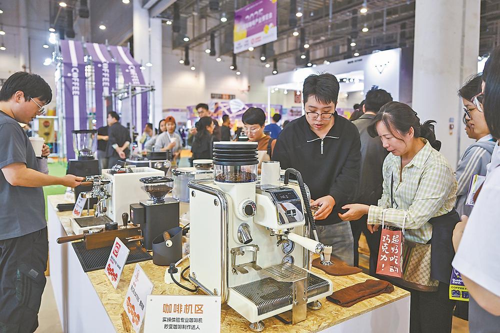 2025廈門國際咖啡產(chǎn)業(yè)博覽會上,參觀者在“全鏈啡凡·廈門咖啡展新品首發(fā)生態(tài)館”內(nèi)了解咖啡機(jī)產(chǎn)品。福建日報記者 施辰靜 攝