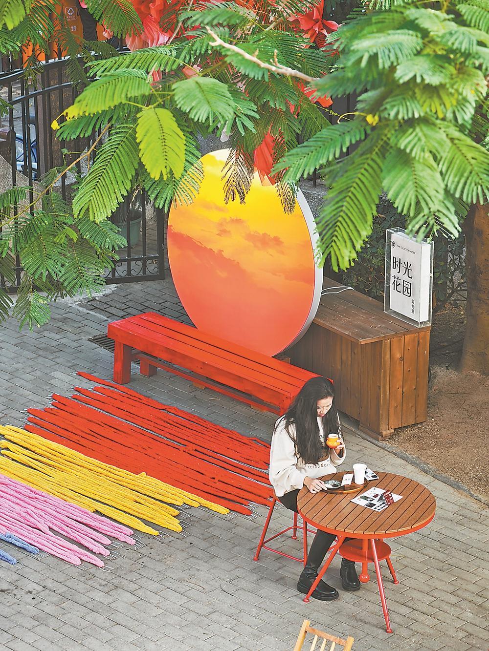 游客在時光花園咖啡文確樓店內(nèi)享受慢時光。