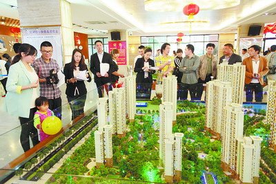 許多市民在海投房產(chǎn)售樓處咨詢房源信息。