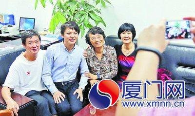 童哲和當(dāng)年教他的老師合影。
