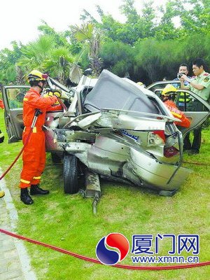 6月29日9時(shí)許,在濱海西大道距離集美大橋收費(fèi)站一公里處,兩輛小轎車追尾后沖上了路邊的綠化帶,被追尾車直至撞上棕櫚樹才停下。救援人員最終從宛若被捏皺的灰色“鐵皮”里,救出了被困司機(jī)。遺憾的是,這名中年司機(jī)已經(jīng)沒有生命跡象。